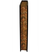 Переплет ручной работы из натуральной кожи, тиснение золотом и блинтом, кругленый корешок с бинтами и инкрустацией красной кожи, форзацы – дизайнерская бумага, дублюра, ляссе.