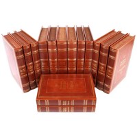 Переплёт ручной работы из натуральной кожи, тиснение золотом и блинтом, форзацы с дублюрой, ляссе.