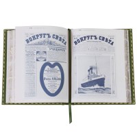 Книжный блок – мелованная бумага, тонированные иллюстрации, трехсторонний обрез расписан под мраморную бумагу.