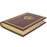 Переплет ручной работы из натуральной кожи, тиснение золотом и блинтом, кругленый корешок с бинтами, форзацы – дизайнерская бумага, ляссе.