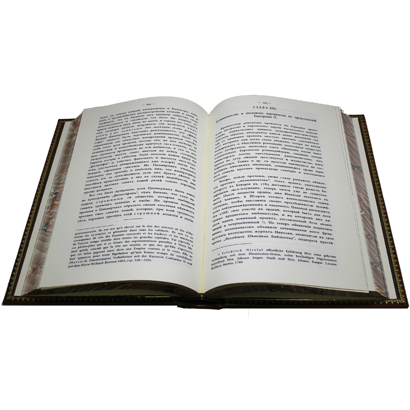 Переплет и футляр ручной работы из натуральной кожи, тиснение золотом, черным пигментом и блинтом, фоорзацы – дизайнерская бумага, дублюра.