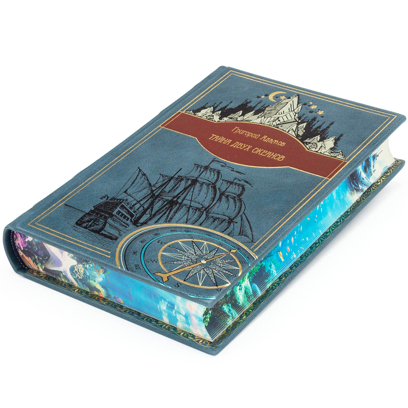 Переплёт ручной работы из натуральной кожи, тиснение золотом, блинтом и цветными пигментами, круглёный корешок с бинтами, иллюстративные форзацы, золотая дублюра.
