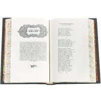 Переплет ручной работы из натуральной кожи, тиснение золотом и блинтом, кругленый корешок с бинтами, форзац – дизайнерская бумага, дублюра.