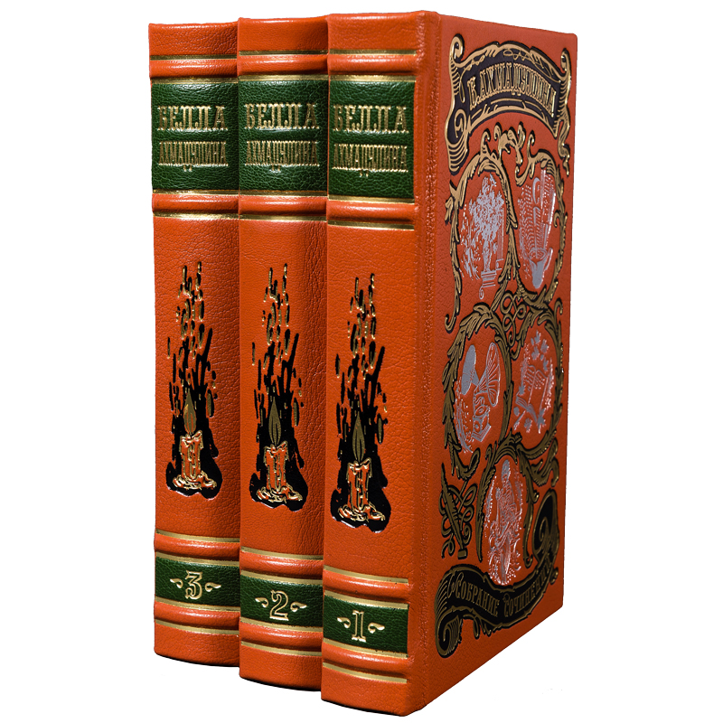 Книжный блок – обрезы окрашены: верхний – с гравировкой золотом, боковой и нижний – с торшонировкой.