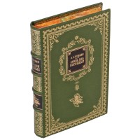 Переплёт ручной работы из натуральной кожи, тиснение золотом и блинтом, инкрустации на обложке и корешке, круглёный корешок с бинтами, золотая дублюра, форзацы – дизайнерская бумага, ляссе.