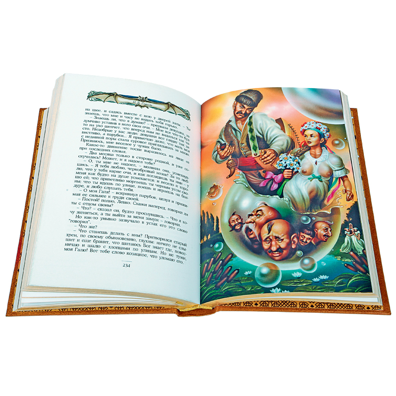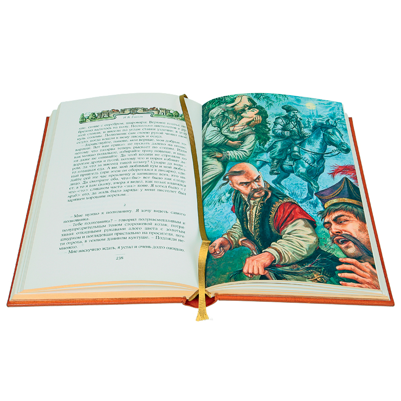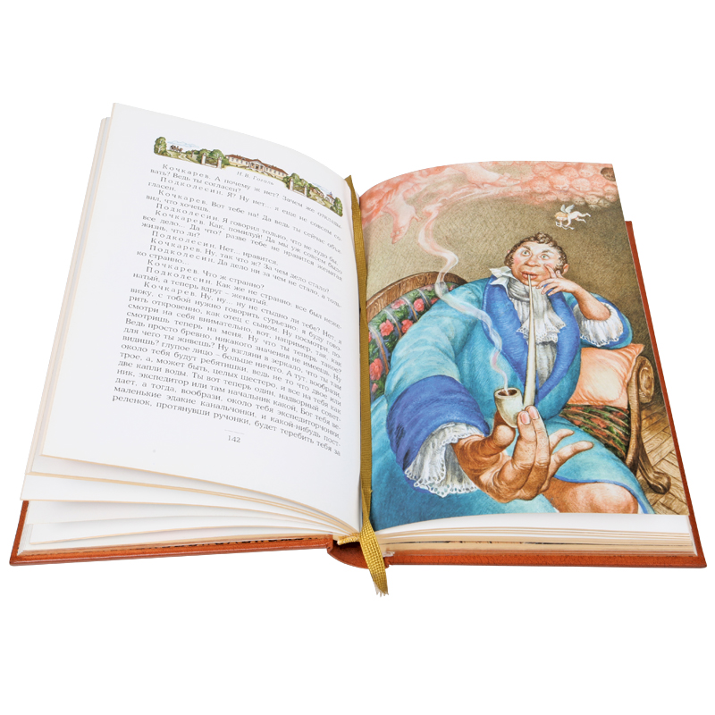 Книжный блок – мелованная бумага, цветные иллюстрации, зеркальные золотые обрезы.