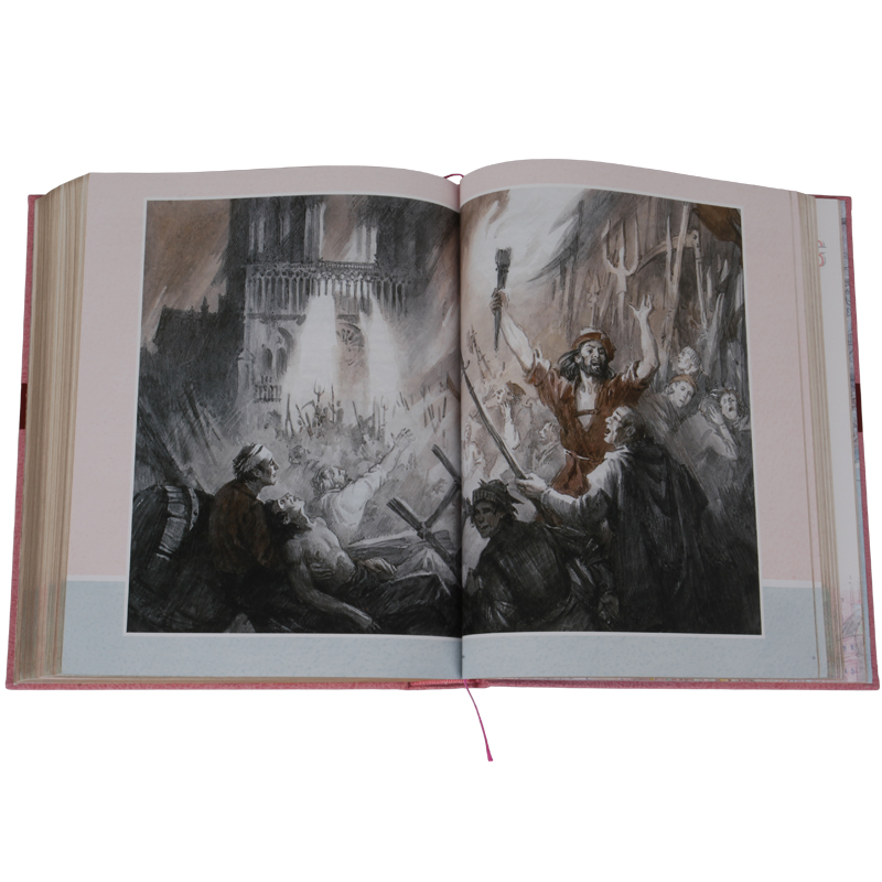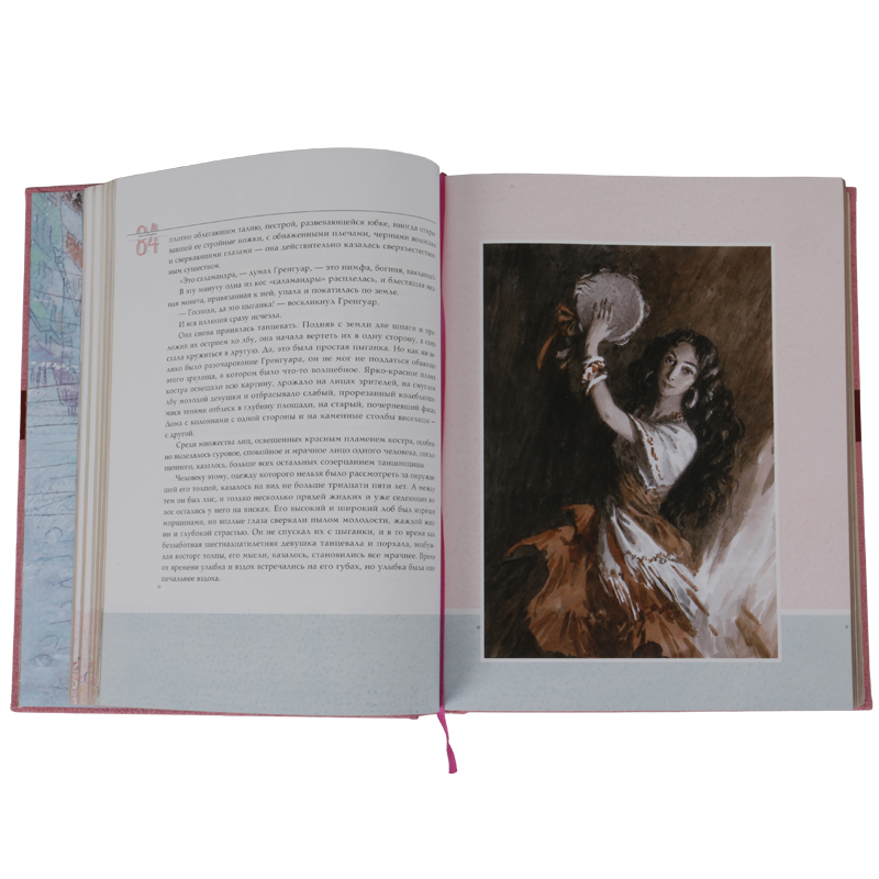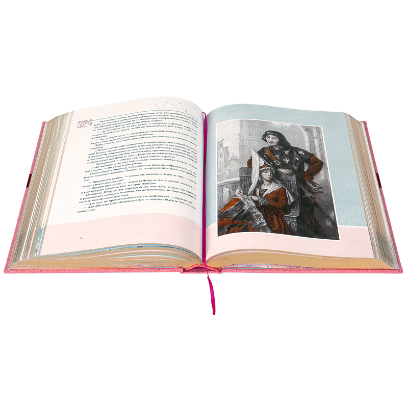 Книжный блок –  мелованная бумага, цветные и тонированные иллюстрации, зеркальные золотые обрезы.