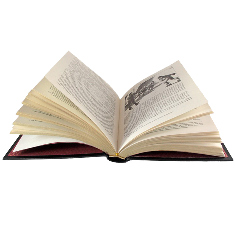 Книжный блок – кремовая  дизайнерская бумага, чёрно-белые иллюстрации, золотые торшонированные обрезы.