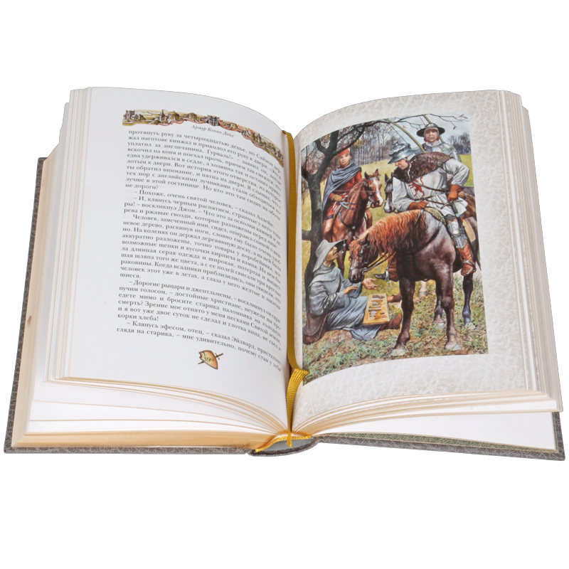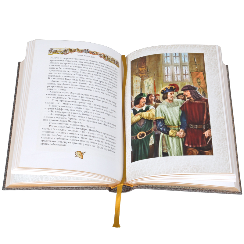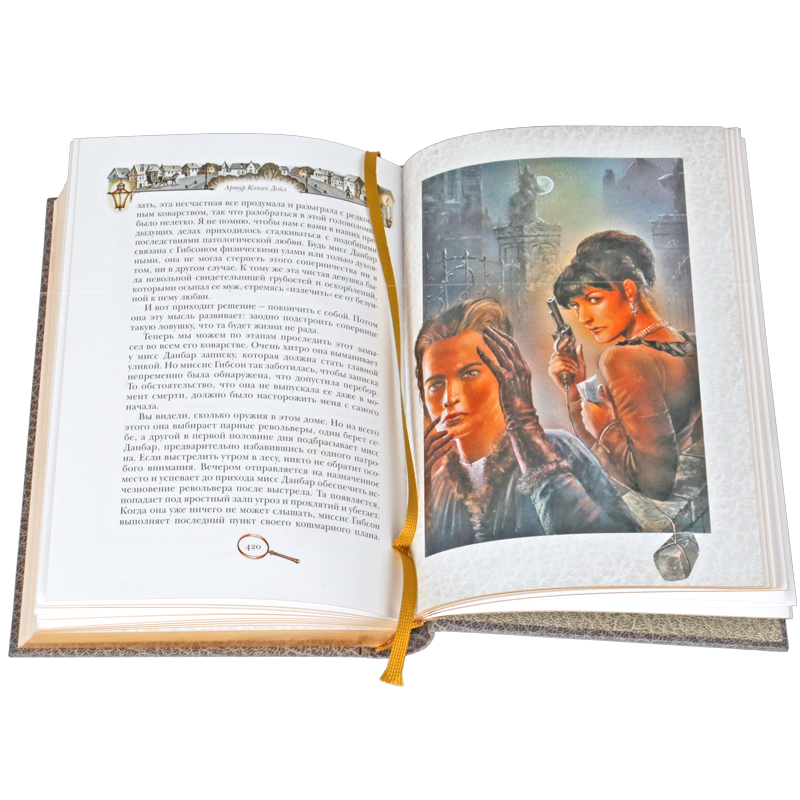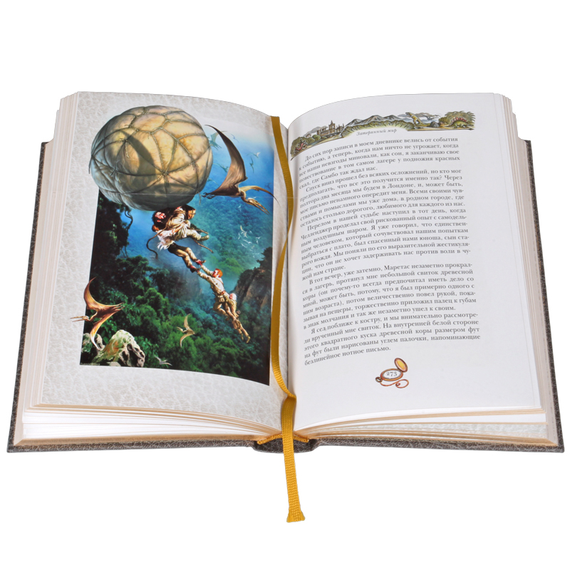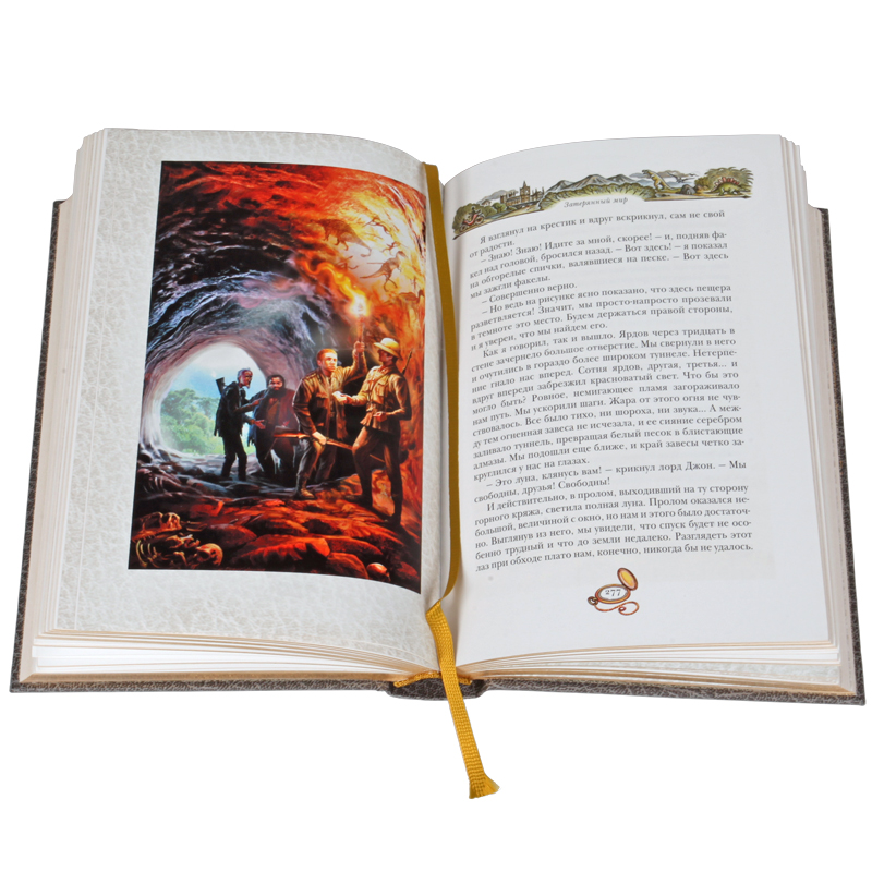 Книжный блок – мелованная бумага, цветные иллюстрации, зеркальные золотые обрезы.