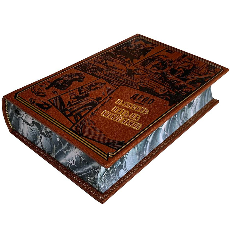 Книжный блок – дизайнерская бумага, чёрно-белые иллюстрации, обрезы расписаны орнаментом «оникс».