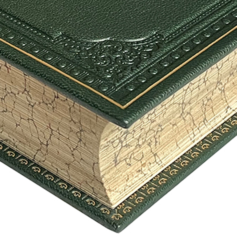 Книжный блок – чёрно-белые иллюстрации, обрезы расписаны орнаментом «кракелюр».