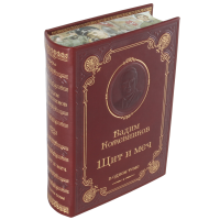 Переплёт ручной работы из натуральной кожи, тиснение золотом, конгревно-блинтовое глубокое тиснение, медальон с портретом автора (высокое конгревное тиснение), круглёный корешок, составной форзац из дизайнерской бумаги, дублюра, ляссе.