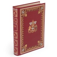 Переплёт - кожа Cabra, тиснение золотом и цветной фольгой, круглёный корешок, ляссе.