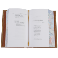Книжный блок – дизайнерская бумага, расписные обрезы иллюстрируют содержание книги.