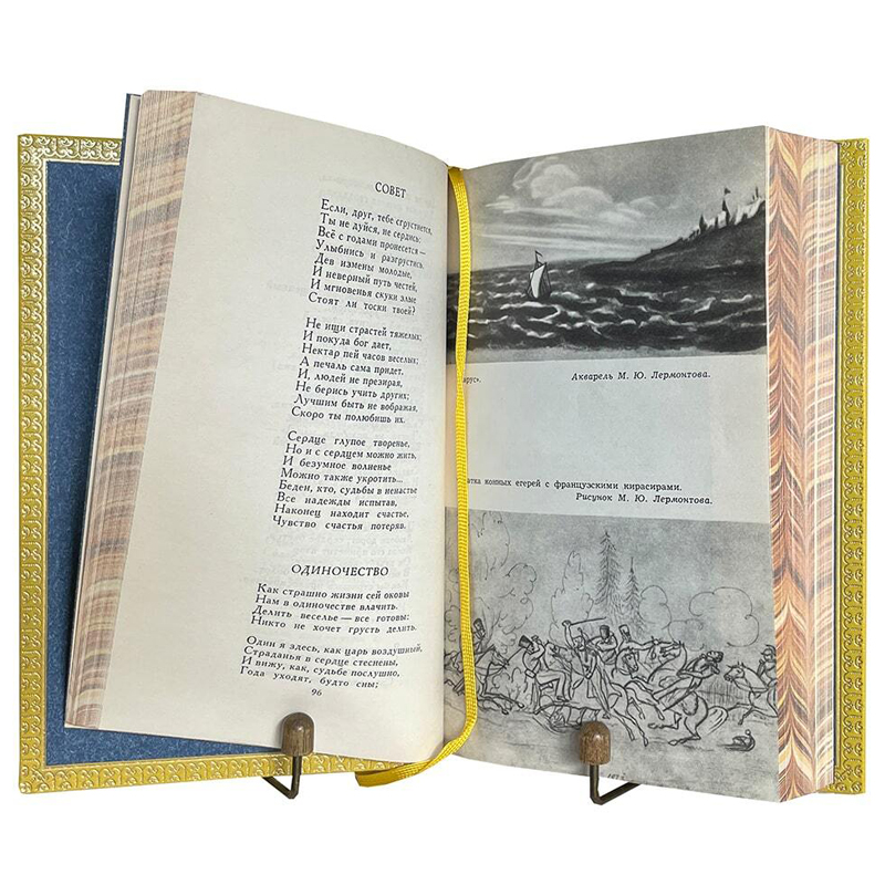 В представленное издание, наряду с роскошной коллекцией стихотворений, вошли 3 поэмы «Мцыри», «Демон» и «Песня про царя Ивана Васильевича, молодого опричника и удалого купца Калашникова», а так же «Маскарад», вершина драматургии Лермонтова, и «Герой нашего времени», ставший новой страницей в истории классической отечественной прозы. Гениальный поэт подвел итог «золотому веку» русской поэзии и положил начало «веку» русского романа!