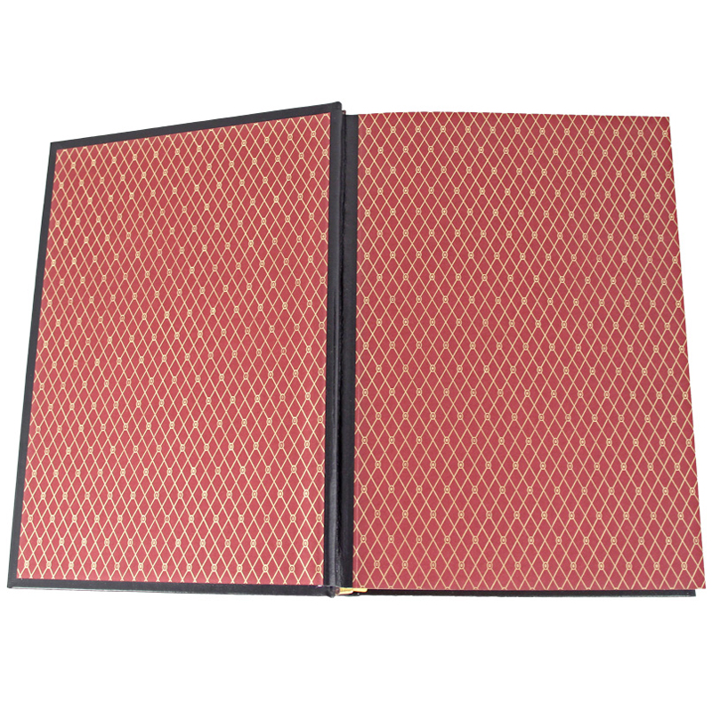 Европейский переплёт ручной работы из натуральной кожи, тиснение золотом, блинтом и цветным пигментом, иллюстративная инкрустация, круглёный корешок с бинтами, форзацы с золотой гравировкой, ляссе.