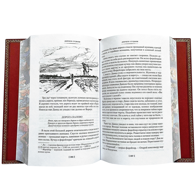 Книжный блок – чёрно-белые иллюстрации, обрезы расписаны вручную иллюстрациями.