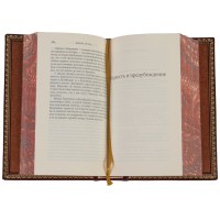 Книжный блок – эксклюзивная сверхтонкая бумага с деликатным колорированием, обрезы расписаны орнаментом «перышки».