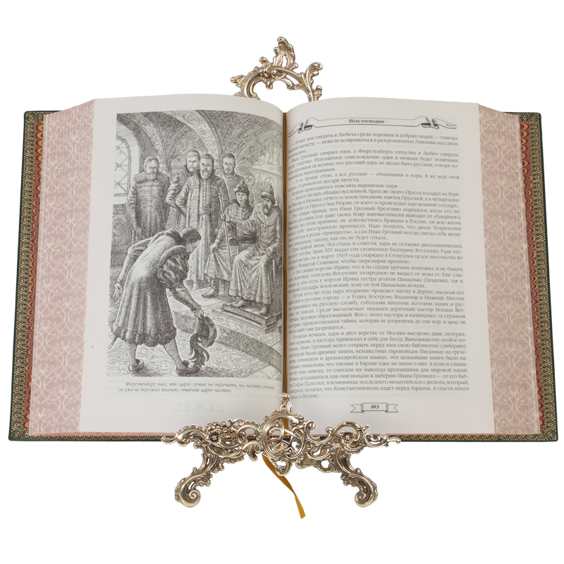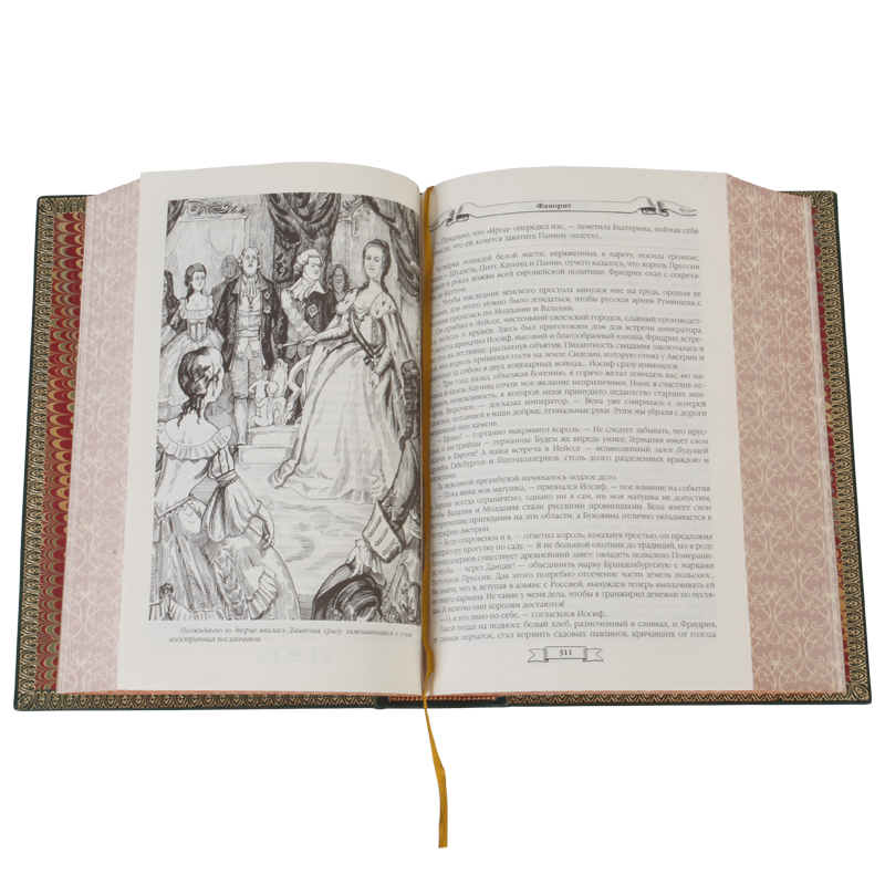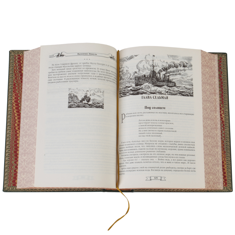 Книжный блок – чёрно-белые иллюстрации, орнаментально расписанные обрезы.