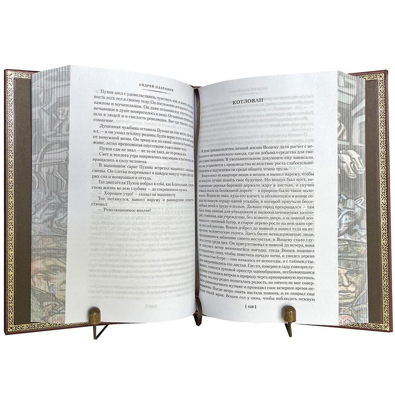 Переплёт из натуральной кожи ручной работы, тиснение золотом, конгревно-блинтовое глубокое тиснение, медальон с портретом автора (высокое конгревное тиснение), круглёный корешок, золотая дублюра, форзац составной из дизайнерской бумаги, ляссе.