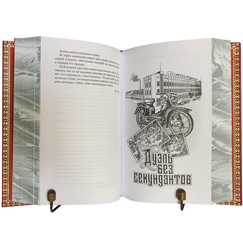Книжный блок – дизайнерская бумага, чёрно-белые иллюстрации, обрезы расписаны орнаментом «оникс».