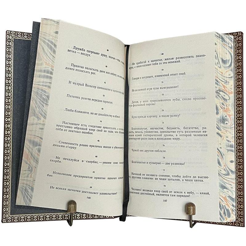 Книжный блок – обрезы расписаны под мраморную бумагу.