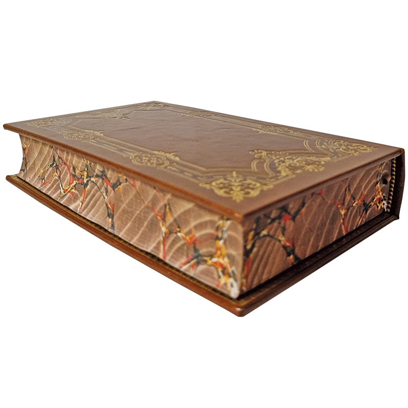 Книжный блок – обрезы расписаны под мраморную бумагу.