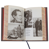 Переплет ручной работы из натуральной кожи, тиснение золотом, разноуровневое блинтовое тиснение, кругленый корешок с бинтами и инкрустацией, дублюра, форзацы – дизайнерская бумага, ляссе.