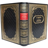 Переплет ручной работы из натуральной кожи, художественное тиснение золотом, разноуровневое блинтовое тиснение, кругленый корешок с бинтами и инкрустацией, дублюра, форзацы –