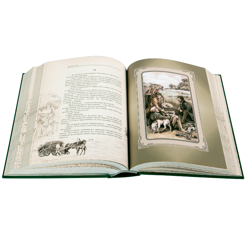 Книжный блок – мелованная бумага, цветные иллюстрации, зеркальные серебряные обрезы.