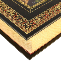 Книжный блок – мелованная бумага, цветные иллюстрации, золотые торшонированные обрезы.