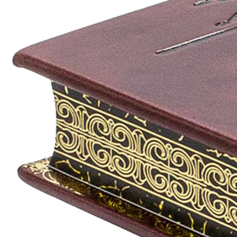 Французский переплёт ручной работы из натуральной кожи, тиснение золотом, цветными пигментами и блинтом, иллюстративные форзацы, золотая дублюра.