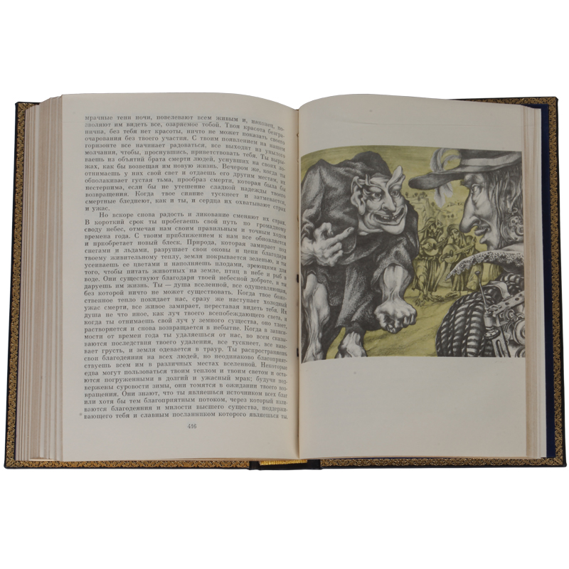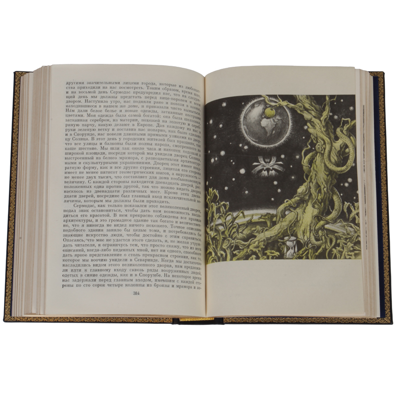 Книжный блок – тонированные иллюстрации, обрезы расписаны орнаментом «крылья».