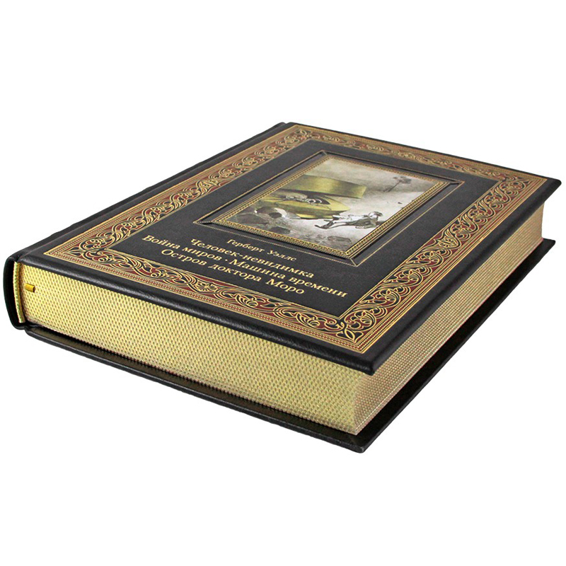 Европейский переплет ручной работы из натуральной кожи, тиснение золотом, блинтом и цветным пигментом, иллюстративная инкрустация, кругленый корешок с бинтами, форзацы с золотой