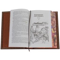Переплёт ручной работы из натуральной кожи, тиснение золотом, конгревно-блинтовое глубокое тиснение, медальон портретом автора (высокое конгревное тиснение), круглёный корешок, составной форзац из дизайнерской бумаги, золотая дублюра, ляссе.