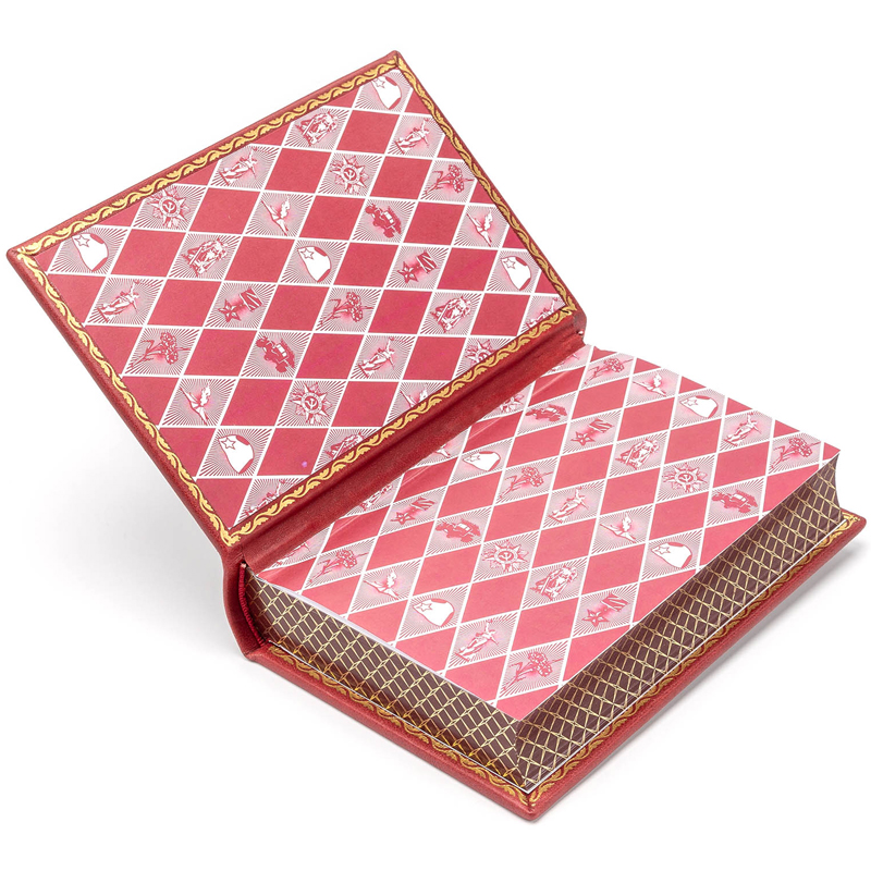 Французский переплет ручной работы из натуральной кожи, тиснение золотом и блинтом, иллюстративная инкрустация, корешок с бинтами, форзацы – дизайнерская бумага, золотая дублюра, ляссе.