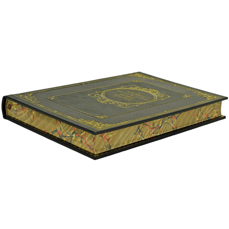 Переплёт ручной работы из натуральной кожи, тиснение золотом и блинтом, форзацы – дизайнерская бумага, золотая дублюра, ляссе.