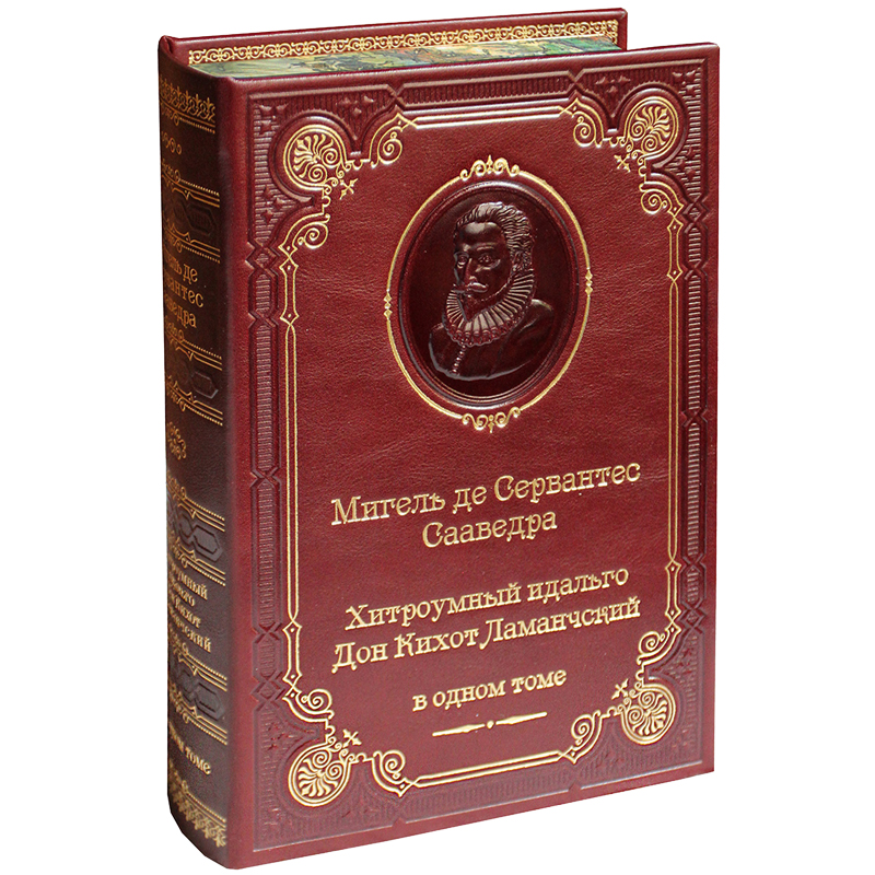 Переплёт из натуральной кожи ручной работы, тиснение золотом, конгревно-блинтовое глубокое тиснение, медальон с портретом автора (высокое конгревное тиснение), круглёный корешок, золотая дублюра, форзац из дизайнерской бумаги, ляссе.